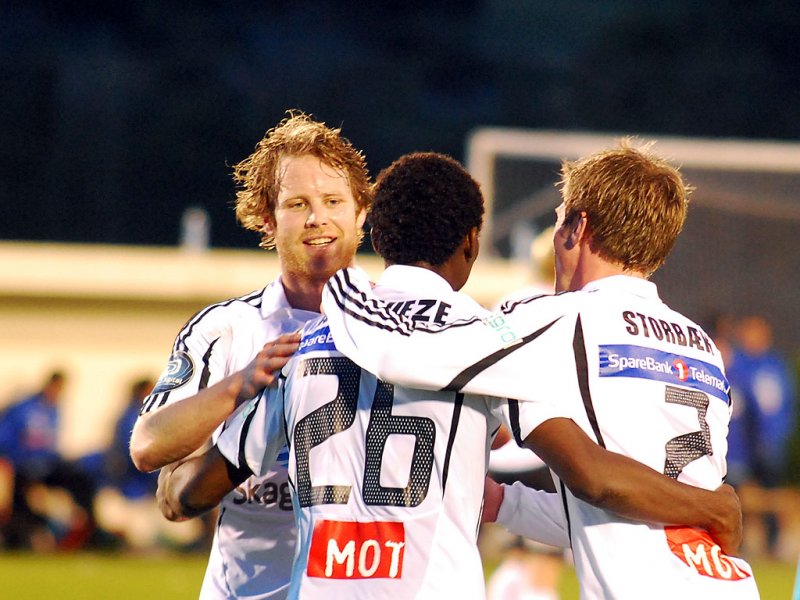 Bentley gratuleres med første scoring. Odd - VIF på La Manga 2010. Foto: Morten Tollefsen