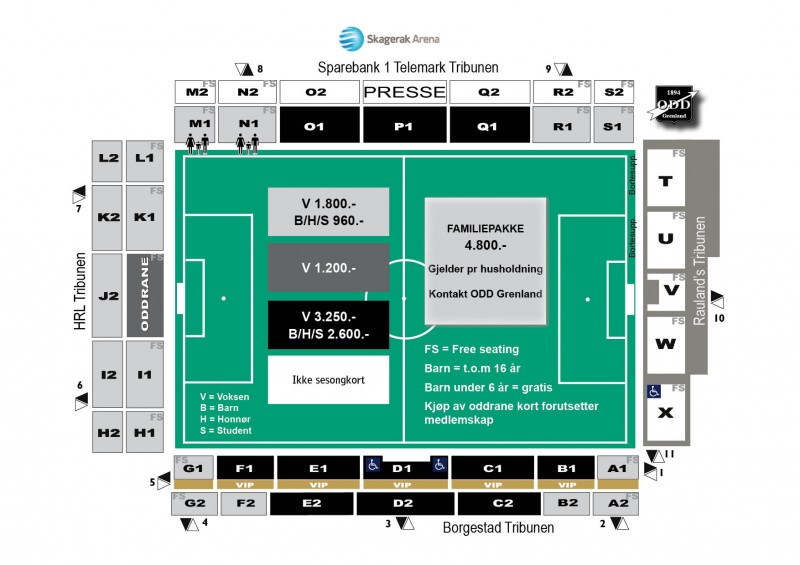 - Sesongkort gjelder alle Tippeligakamper og NM Cupcamper på Skagerak Arena 2012
