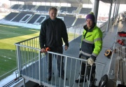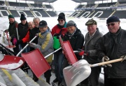 Snøen er i ferd med å tape kampen på Skagerak Arena, og dugnadsgjengen som har gått løs på snømassene på selve tribunene er nådeløse i sin kamp.